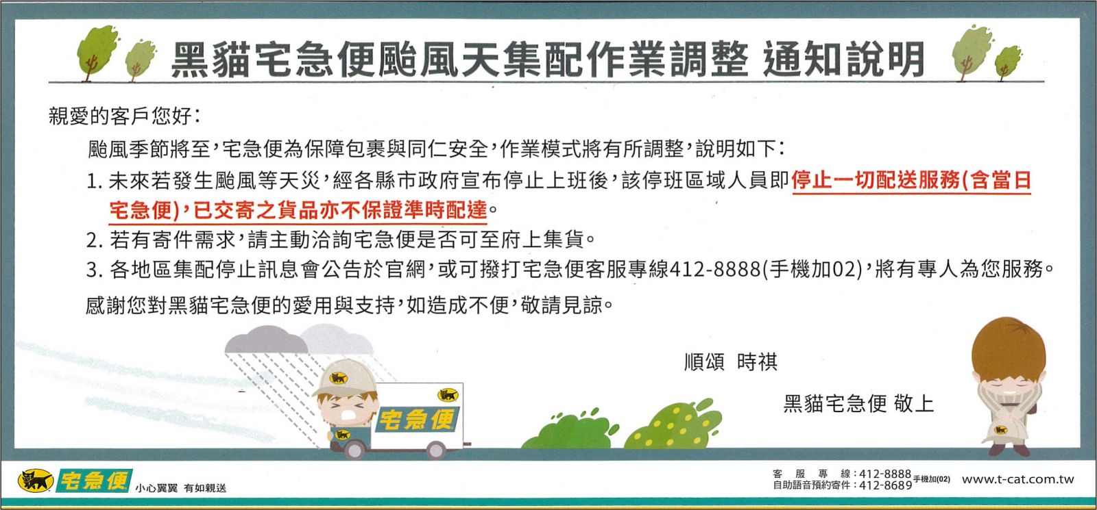 颱風天 宅配通知